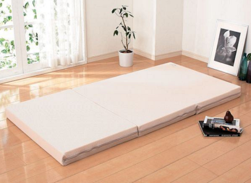 1枚で敷きふとんとベッドマットレスの両方で使用できる高反発マットレス(敷ふとん)で、日本限定発売の3つ折りタイプの商品で安心の6年保証付きです。